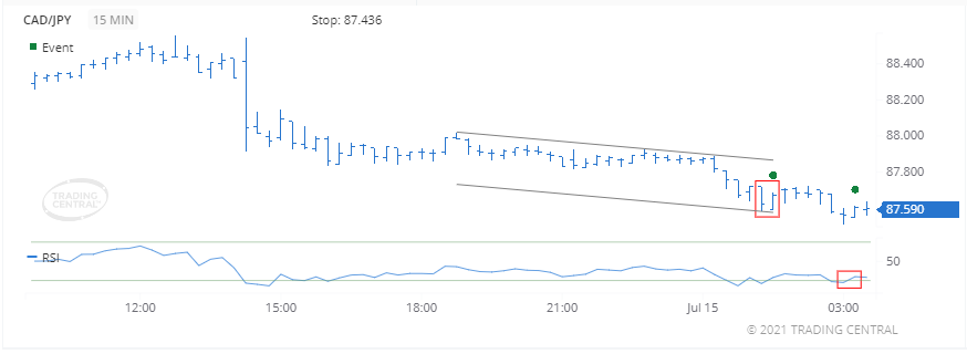 Chỉ số RSI tăng trên 30 vào ngày 15 tháng 7 năm 2021 lúc 03:15 GMT, cho chúng ta biết giá đang bắt đầu phục hồi sau khi bị bán quá mức.
