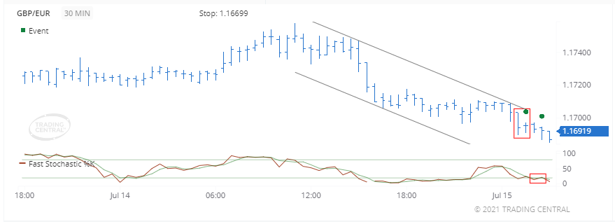 Một sự kiện tăng giá đã được kích hoạt cho Fast Stochastics vào ngày 15 tháng 7 năm 2021 lúc 02:30 GMT khi đường% K vượt lên trên đường% D. Giá đóng cửa đang giao dịch gần hơn với phần trên của phạm vi giá cao-thấp gần đây, có liên quan đến việc tăng giá.