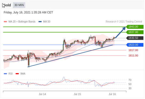 Các vị trí mua trên 1823,00 với mục tiêu là 1837,00 & 1843,00 trong thời gian gia hạn.