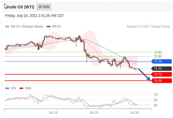 Các vị thế bán dưới 72,30 với mục tiêu là 70,75 & 70,00 trong phần mở rộng.