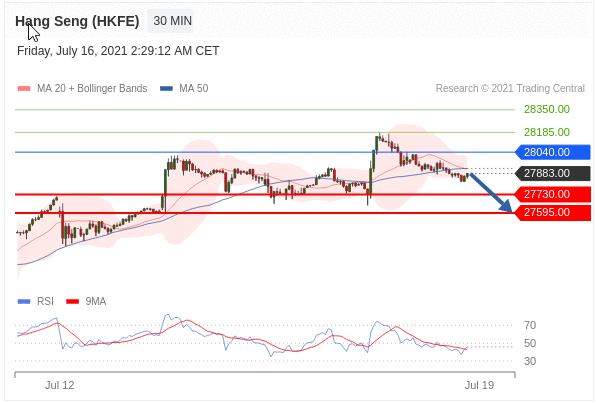 Các vị thế bán dưới 28040,00 với mục tiêu là 27730,00 & 27595,00 trong phần mở rộng.