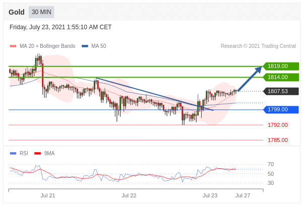 Các vị trí mua trên 1799,00 với mục tiêu là 1814,00 & 1819,00 trong thời gian gia hạn.