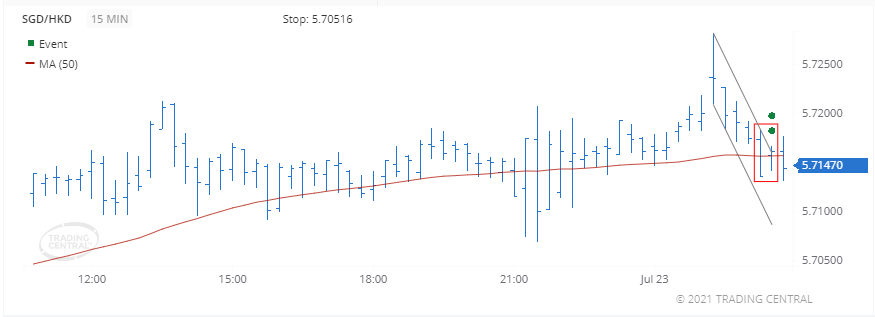 Giá vượt qua mức trung bình động của nó vào ngày 23 tháng 7 lúc 02:30 GMT báo hiệu một xu hướng tăng mới đã được thiết lập.