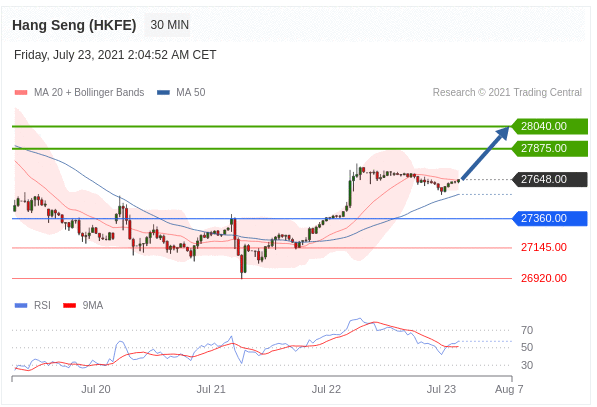 Các vị trí mua trên 27360,00 với mục tiêu là 27875,00 & 28040,00 trong phần mở rộng.