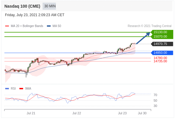 Các vị thế mua trên 14735,00 với mục tiêu là 14900,00 & 15000,00 trong phần mở rộng.