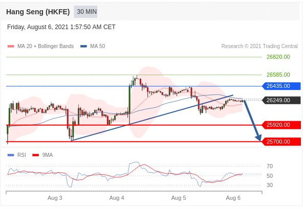 Các vị thế bán dưới 26435,00 với mục tiêu là 25920,00 & 25700,00 trong phần mở rộng.