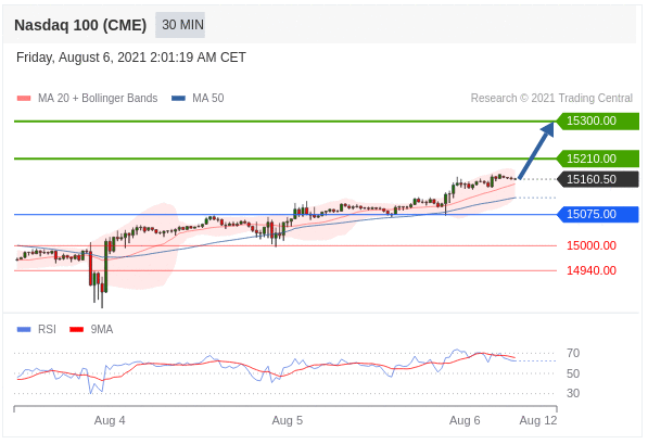 Các vị thế mua trên 15075,00 với mục tiêu là 15210,00 & 15300,00 trong phần mở rộng.