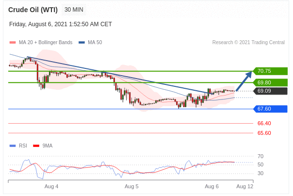 Các vị thế mua trên 67,60 với mục tiêu là 69,80 & 70,75 trong phần mở rộng.
