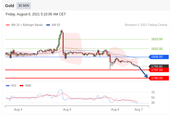 Các vị thế bán dưới 1808,00 với mục tiêu là 1797,00 & 1790,00 trong phần mở rộng.