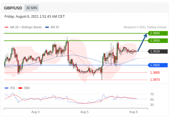 Các vị thế mua trên 1.3900 với mục tiêu là 1.3950 & 1.3965 trong phần mở rộng.