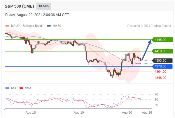 Các vị thế mua trên 4378,00 với mục tiêu là 4418,00 & 4448,00 trong phần mở rộng.