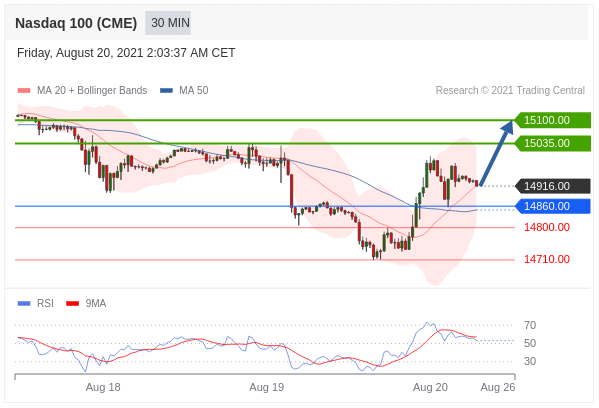 Các vị thế mua trên 14860,00 với mục tiêu ở mức 15035,00 & 15100,00 trong phần mở rộng.