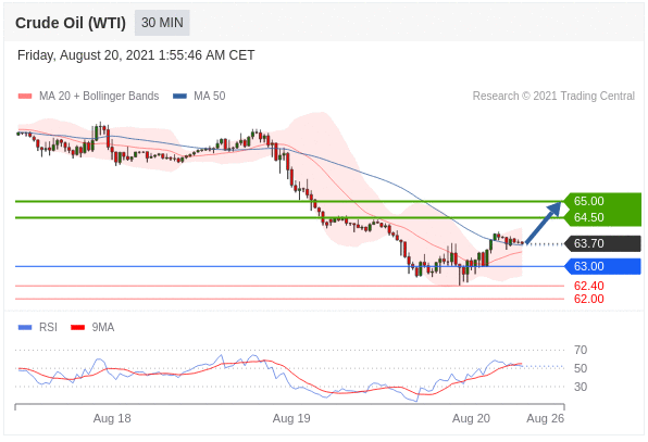 Các vị thế mua trên 63,00 với mục tiêu là 64,50 & 65,00 trong phần mở rộng.