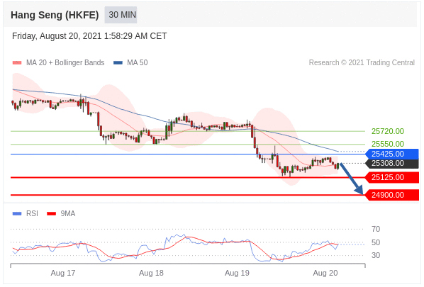 Các vị thế bán dưới 25425,00 với mục tiêu là 25125,00 & 24900,00 trong phần mở rộng.