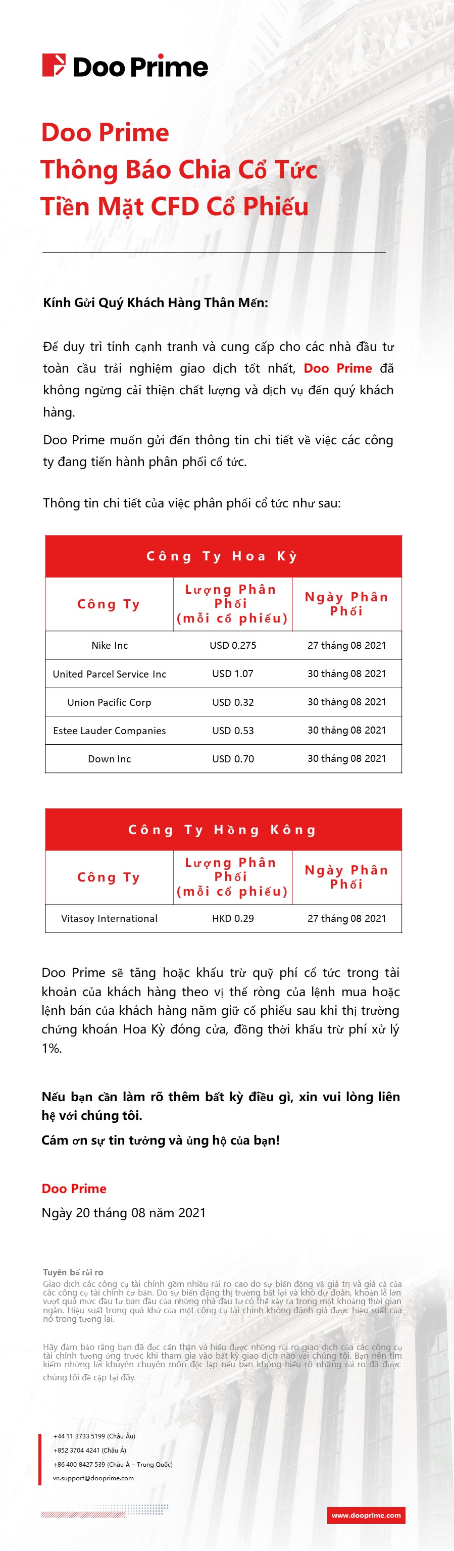 Doo Prime Thông Báo Chia Cổ Tức Tiền Mặt CFD Cổ Phiếu