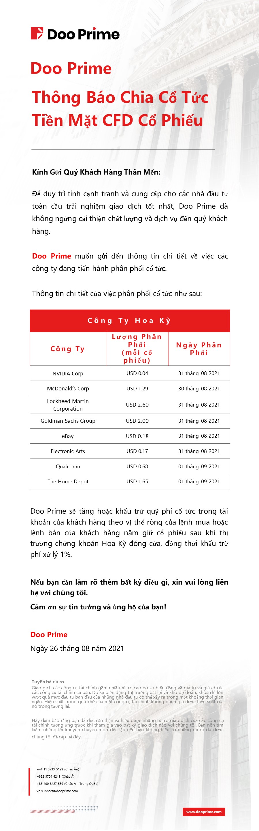 Doo Prime Thông Báo Chia Cổ Tức Tiền Mặt CFD Cổ Phiếu