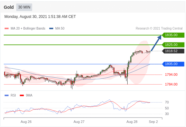 Các vị thế mua trên 1805,00 với mục tiêu là 1825,00 & 1835,00 được mở rộng.