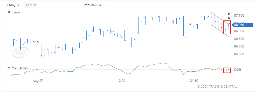 Bộ dao động Momentum vượt qua mức 0 vào ngày 30 tháng 8 năm 2021 lúc 02:30 GMT, do đó báo hiệu một xu hướng tăng nhanh mới.