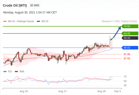 Việc phá vỡ trên 68,55 là một tín hiệu tích cực đã mở ra một con đường đến 69,85.