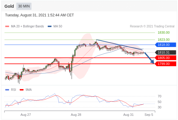 Các vị thế bán dưới 1818,00 với mục tiêu là 1805,00 & 1799,00 trong phần mở rộng.
