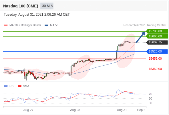 Các vị thế mua trên 15520,00 với mục tiêu là 15660,00 & 15705,00 trong phần mở rộng.