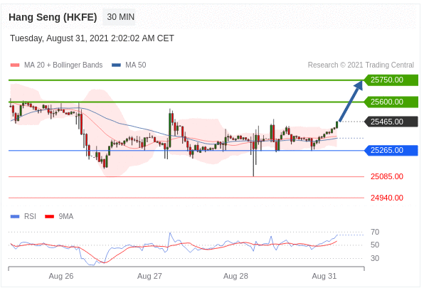 Các vị thế mua trên 25265,00 với mục tiêu là 25600,00 & 25750,00 trong phần mở rộng.