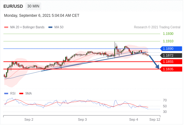 Các vị thế bán dưới 1.1890 với mục tiêu là 1.1855 & 1.1835 trong phần mở rộng.