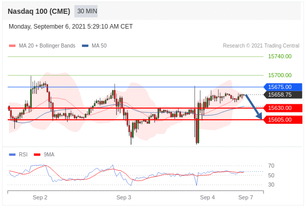 Các vị thế bán dưới 15675,00 với mục tiêu là 15630,00 & 15605,00 trong phần mở rộng.