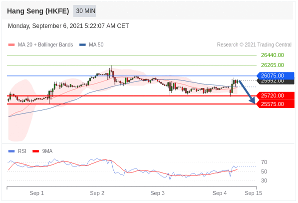 Các vị thế bán dưới 26075,00 với mục tiêu là 25720,00 & 25575,00 trong phần mở rộng.