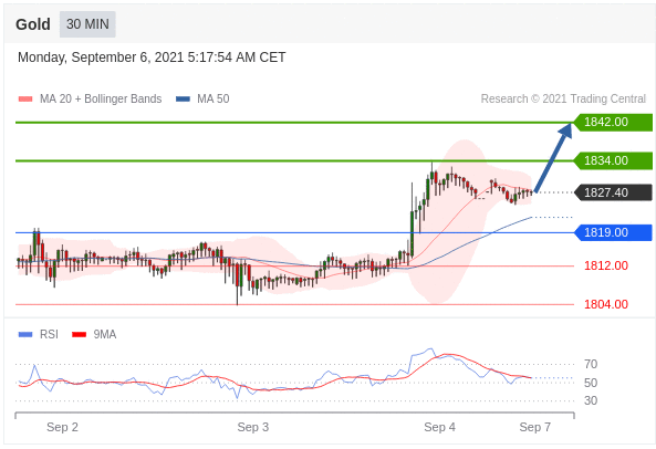 Các vị trí mua trên 1819,00 với mục tiêu là 1834,00 & 1842,00 trong thời gian gia hạn.