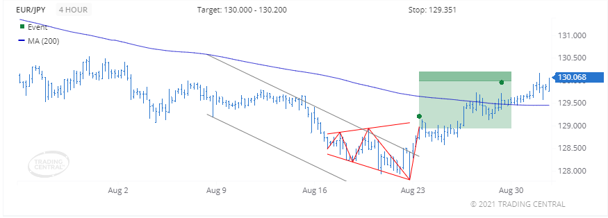 Chúng tôi đã tìm thấy một mô hình có tên là Inside Bar (Bullish) vào ngày 06 tháng 9 lúc 01:00 GMT trên biểu đồ 30 phút cho thấy triển vọng tăng giá trong tối đa 12 giờ.