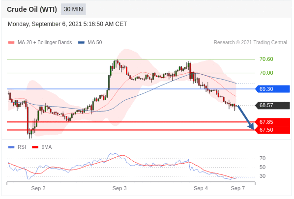 Các vị thế bán dưới 69,30 với mục tiêu là 67,85 & 67,50 trong phần mở rộng.