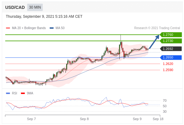 Các vị thế mua trên 1.2650 với mục tiêu là 1.2730 & 1.2760 trong phần mở rộng.