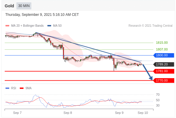Các vị thế bán dưới 1800,00 với mục tiêu ở mức 1781,00 & 1770,00 trong phần mở rộng.