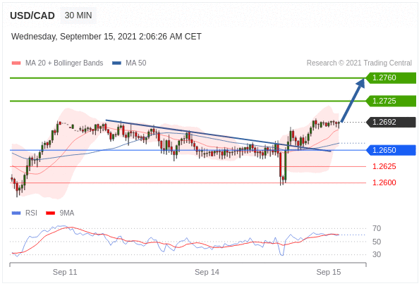Các vị thế mua trên 1.2650 với mục tiêu là 1.2725 & 1.2760 trong phần mở rộng.