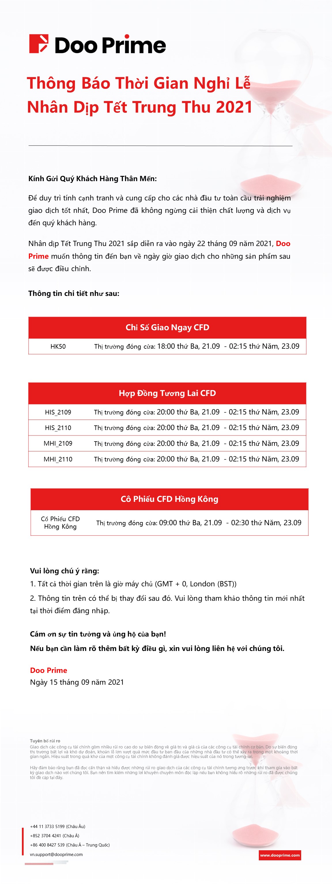 Chúng tôi xin thông tin đến bạn về giờ giao dịch được điều chỉnh cho các ngày lễ sắp tới trong tháng 04 năm 2025.