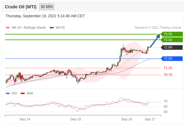 Các vị thế mua trên 72,00 với mục tiêu là 73,50 & 73,95 trong phần mở rộng.