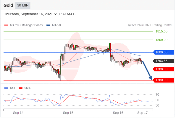 Các vị thế bán dưới 1800,00 với mục tiêu là 1788,00 & 1780,00 trong phần mở rộng.