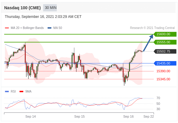 Các vị thế mua trên 15435,00 với mục tiêu là 15555,00 & 15600,00 trong phần mở rộng.