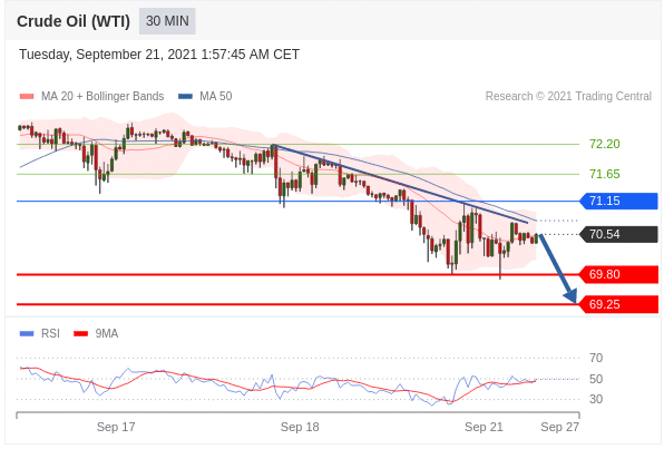 Các vị thế bán dưới 71,15 với mục tiêu là 69,80 & 69,25 trong phần mở rộng.