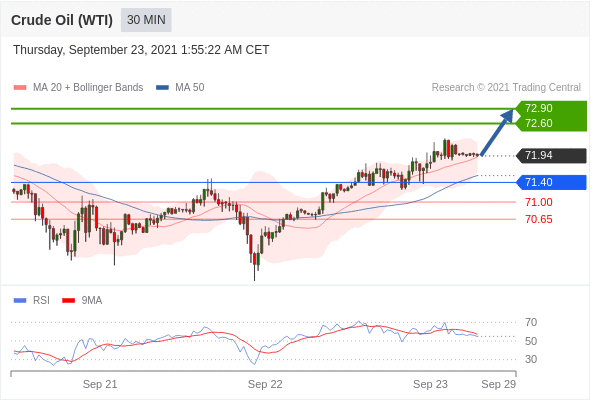 Các vị thế mua trên 71,40 với mục tiêu là 72,60 & 72,90 trong phần mở rộng.