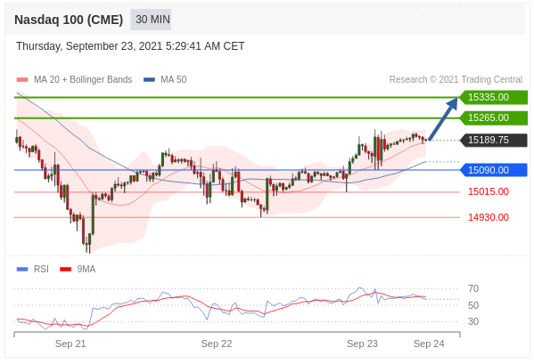 Các vị thế mua trên 15090,00 với mục tiêu là 15265,00 & 15335,00 trong phần mở rộng.
